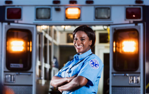 Woman at the back of an ambulance